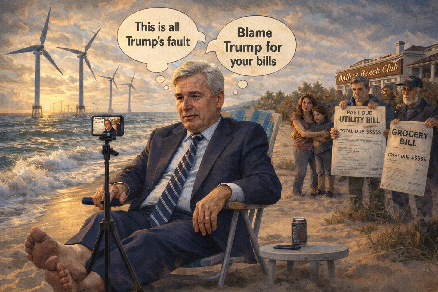 You can scream all day about “Trump’s oil,” but you’re playing the same game on the green side—cheerleading aggressive mandates and offshore projects tied to your wife’s line of work, even as Rhode Island families are warned their bills will keep going up. When those timelines slip, you run back to social media in another outrage video instead of owning the trade‑offs.