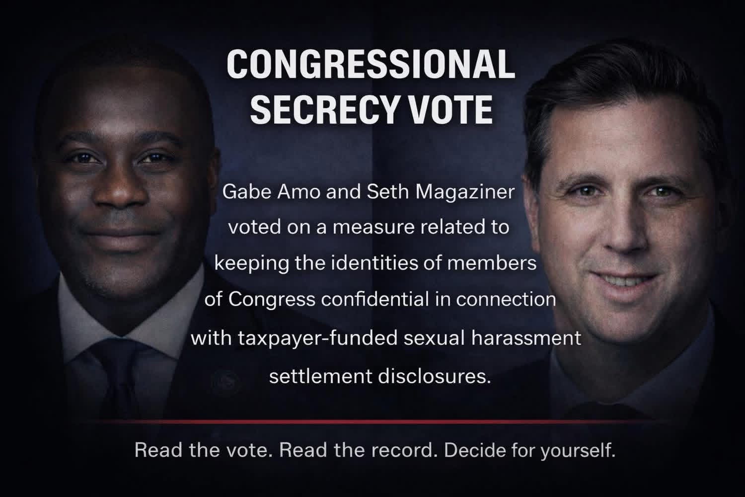 On the very same day, they voted yes on a move to bury the names of Members of Congress who used your taxpayer money to quietly settle sexual harassment and misconduct claims.