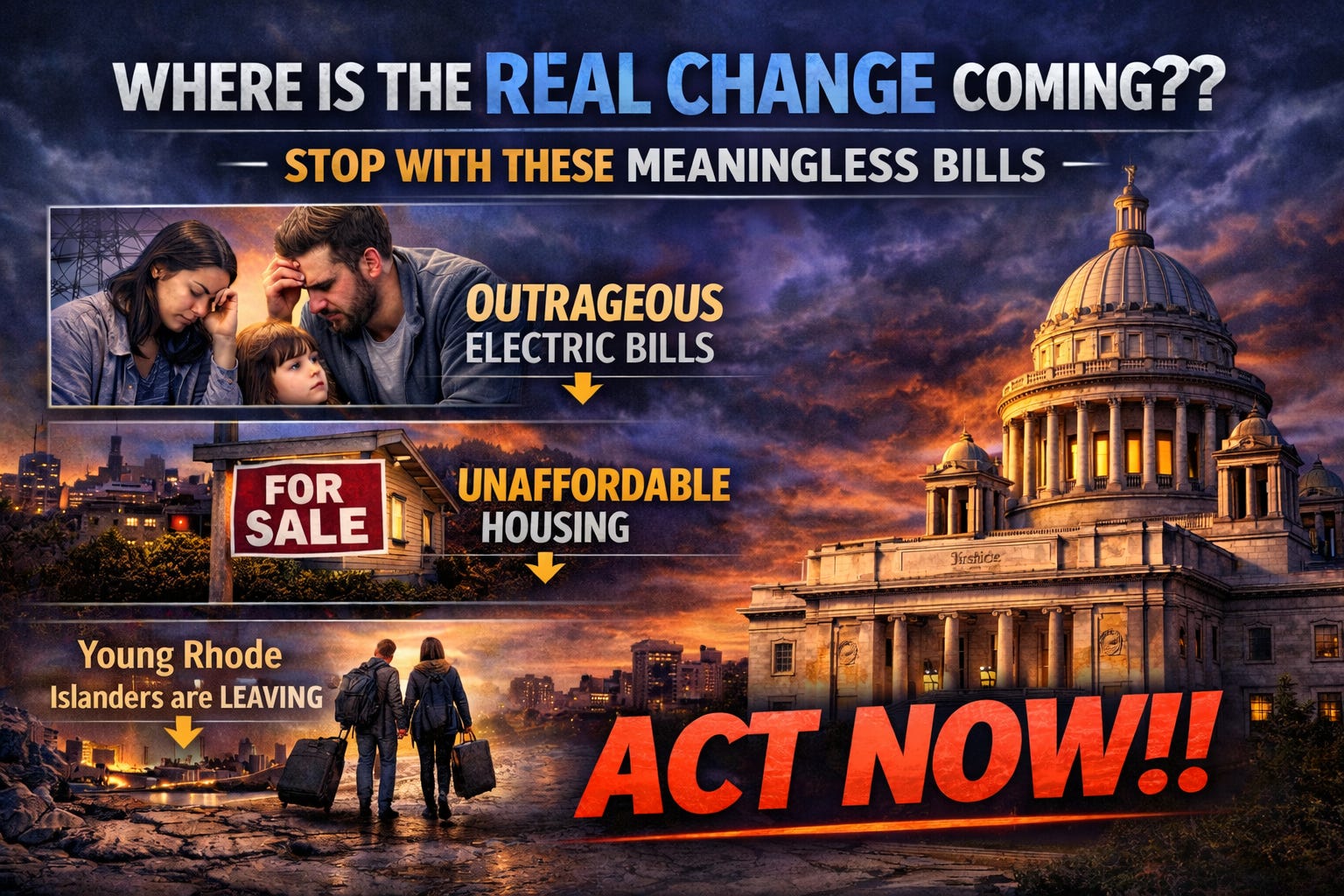 Rhode Island State House, when are we finally going to see real bills that actually help working families and seniors instead of pushing them out of this state?