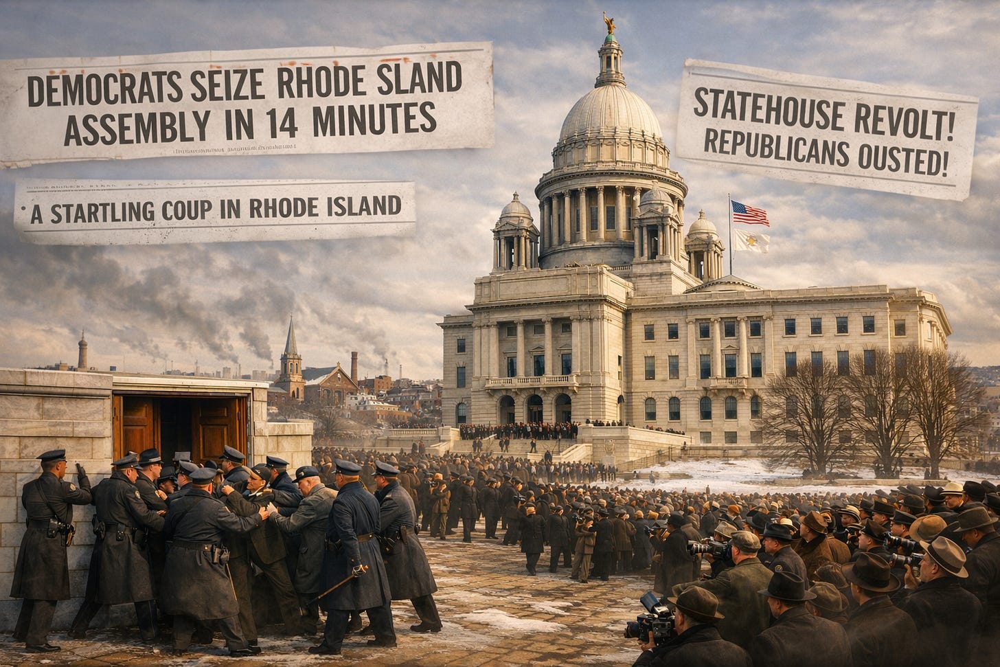 On New Year’s Day 1935, in the span of fourteen minutes, the Democratic Party seized control of Rhode Island state government in one of the most audacious political power grabs in American history. No election. No mandate from voters. Just a lieutenant governor who refused to seat duly elected Republican senators, state police stationed at chamber doors so lawmakers couldn’t escape to break quorum, and a party that rewrote the rules of power while the rest of the state was still recovering from the night before.